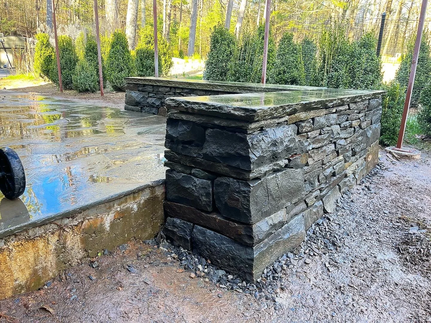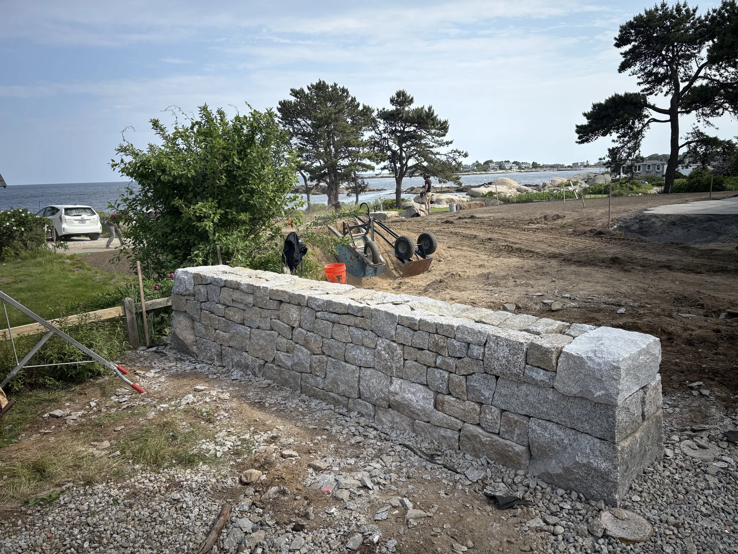 Granite wall Jackson helped build for Maine Stone Scapes