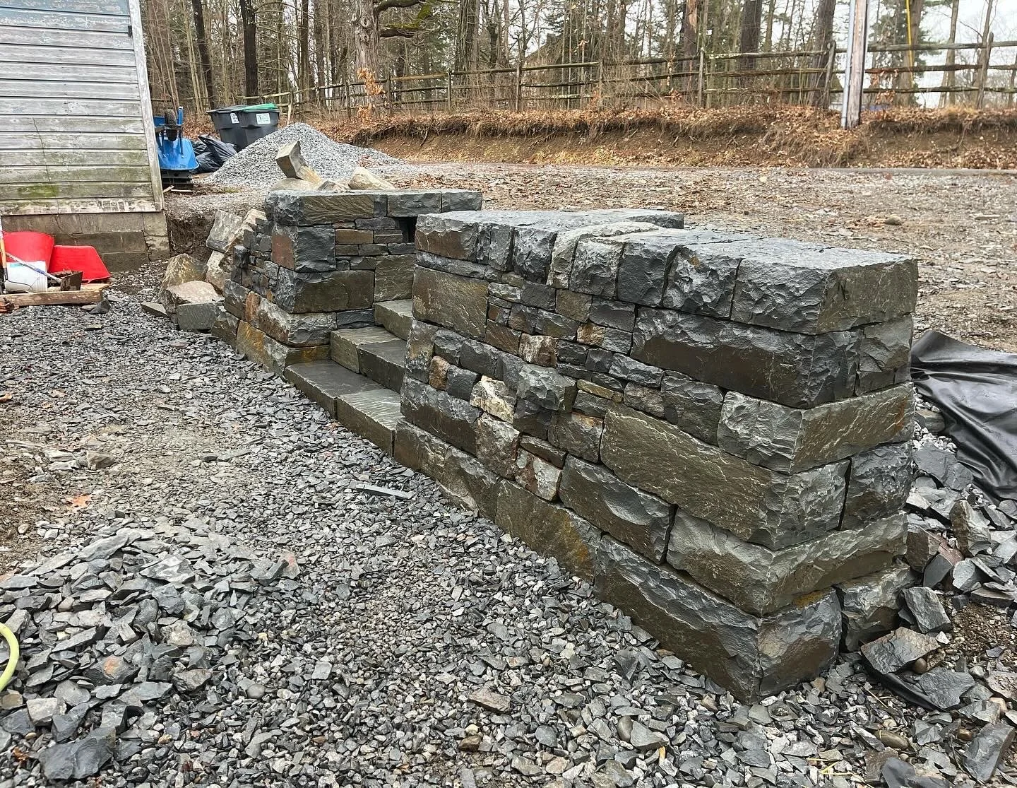 Hudson Hardscape stone wall stone steps bluestone wall