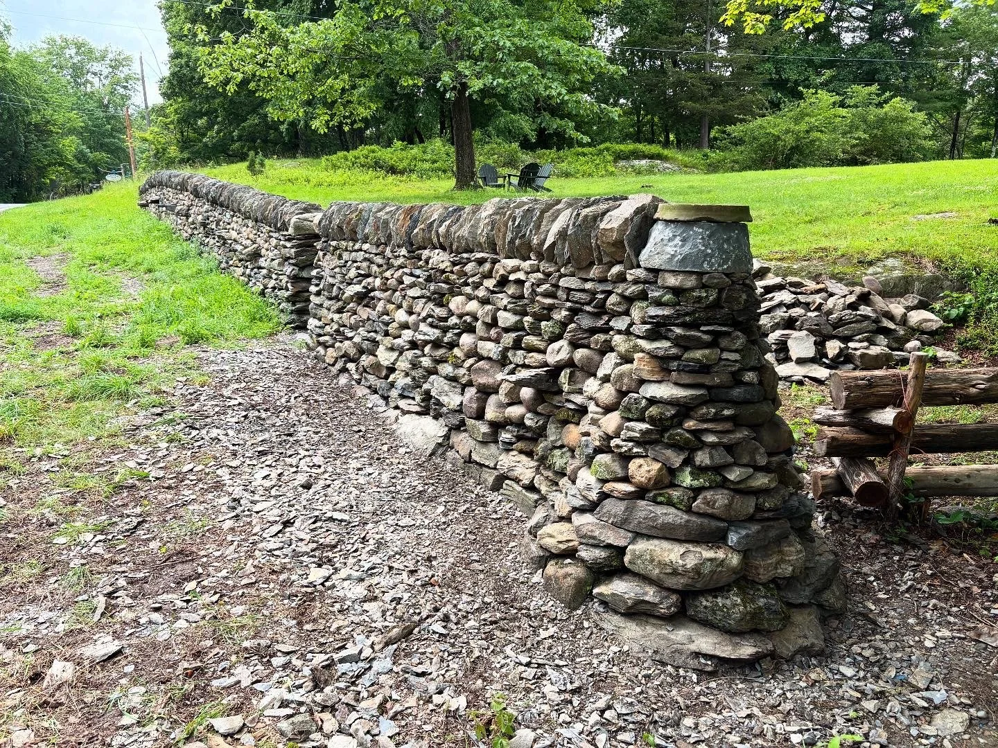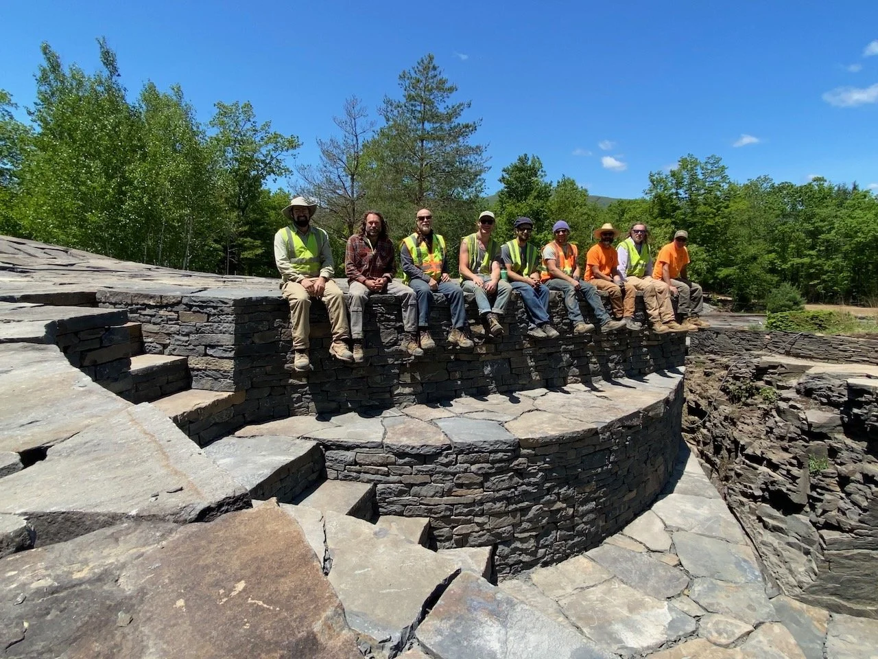 In addition to projects for Hudson Hardscape, Jackson will often join teams of expert stone masons and wallers to complete larger projects, notably the 2023 restoration of the Harvey Fite sculpture Opus 40 lead by DSWA Master Craftsman Brian Post of Standing Stone LLC