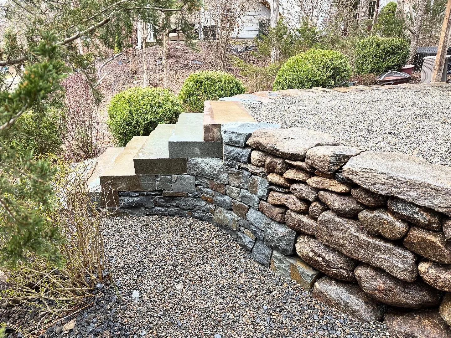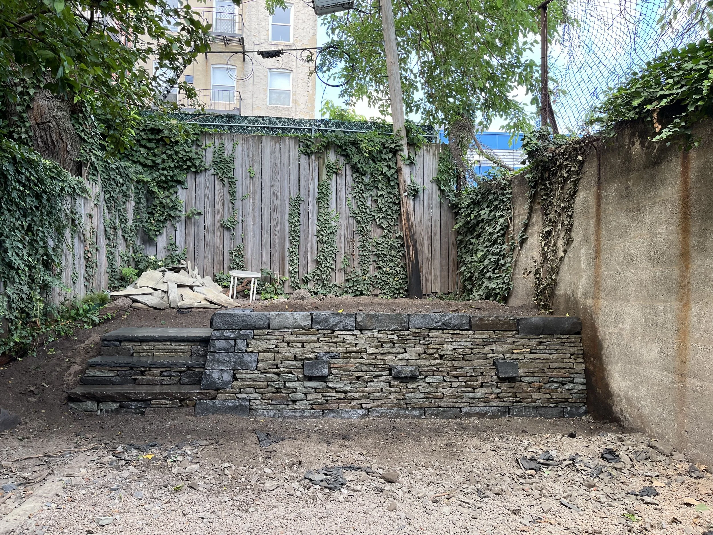 Hudson Hardscape steps and wall beautiful backyard bluestone wall
